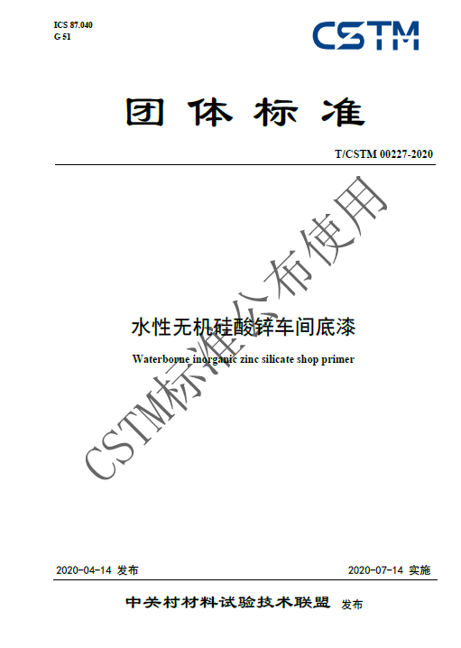 2.T/CSTM 00227-2020《水性無機硅酸鋅車間底漆》團體標準,已于2020年4月14日經中關村材料試驗技術聯盟發布,于2020年7月14日實施,巴司特科技作為主要起草單位參與該標準制定。